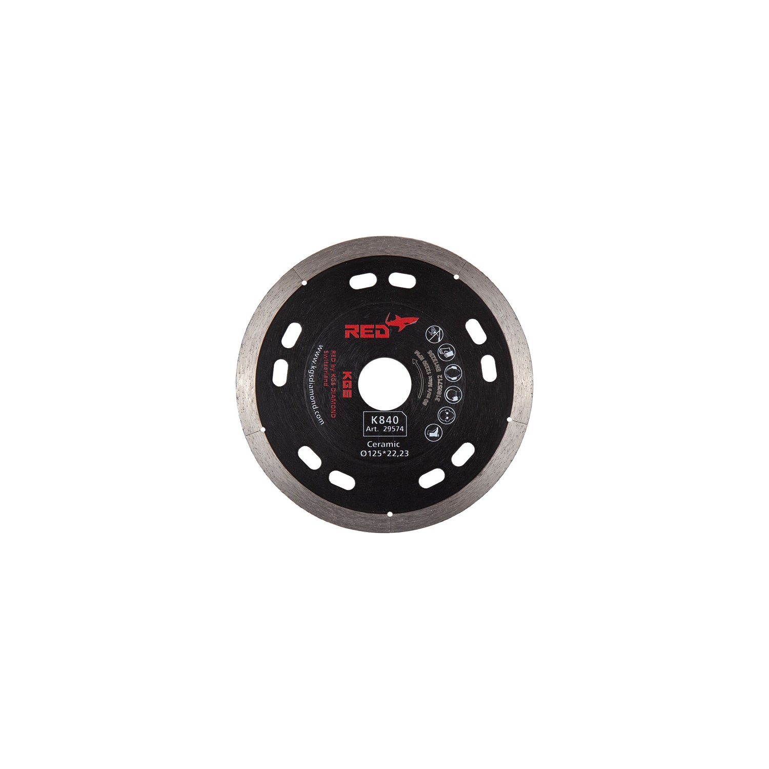 KGS RED K840 GOLD LINE Diamond cutting blade, continuous rim with laser segmentation. Best for: Ceramic, porcelain and engineered stone.