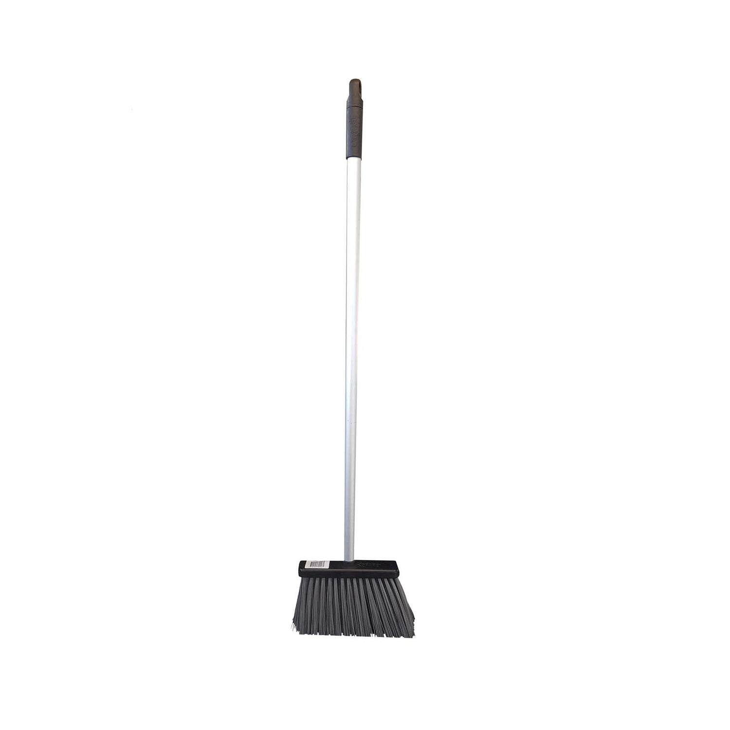 Industrial strength aluminium handle. Stiff angled bristles collect large particles. For use with Oates B-11115 Commercial Lobby Pan as a broom replacement.