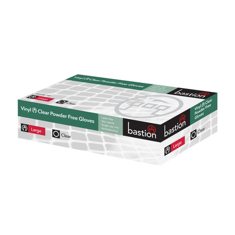 BASTION VINYL CLEAR POWDER FREE LARGE DISPOSABLE GLOVES 100 PACK