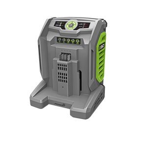 The EGO 700W Turbo Charger monitors and controls each cell in the battery pack to control temperature for maximum battery life. The active cooling fan system and advanced communication with the battery supports turbo charging without overheating. The turbo recharge capability ensures limited downtime with any EGO 56V ARC Lithium™ battery
