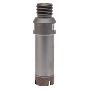 KGS CNC-drill® with a diameter of Ø25mm for drilling granite, composite, ceramic and marble. The drill has a wall thickness of 1 mm, enabling it to drill through the material at high speed. The drills are suitable for use on CNC machines and drilling machines (on a stand). These drills have a 1/2" Gas connection. In exceptional cases, the drills can also be used on an angle grinder in combination with an M14 adapter. Ideal when a tap hole needs to be drilled on location. Workable Material Ceramic, Marble, Engineered Stone, Granite Machine type Angle Grinder, CNC Machine, Drill Usage Wet Diameter (mm) 25 Length (mm) 55 Adapter (connection) 1/2"R Segment width (mm) 1 Recommended speed (rpm) 2200 ▪ Strong quality ▪ Thin wall 1 mm construction ▪ Sharp edges ▪ Suitable for fast drilling